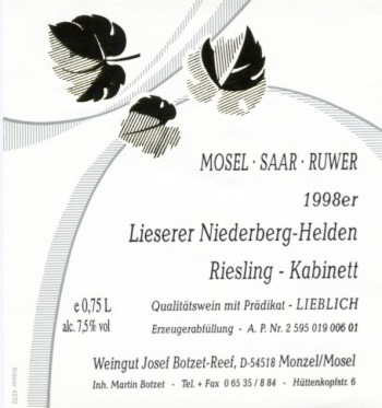 Riesling-Kabinettlieblich fruchtig, abgerundete Säure0,75 Liter Flasche