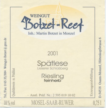 2001er Lieserer Schlossberg - feinherb