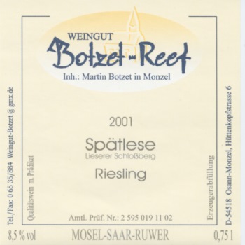 Riesling-Spätleselieblich reif und sehr bekömmlich, fruchtiges Aroma0,75 Liter Flasche